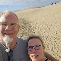 Sonni will heute in die Dünen, also machen wir das. Es ist schwierig in den Dünen zu laufen, sofern der Sand nicht nass ist. Für Menschen mit Knieproblemen ist es sowieso nichts.