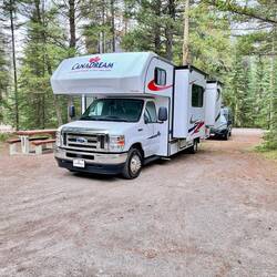 Hi Leute, unser erstes Ziel war der Bow River Campingplatz. Zuerst stand auf der To-Do Liste unseren RV einparken, die Slide-outs rausfahren und Strom anschließen. Dann haben wir uns mit einemLeia mais