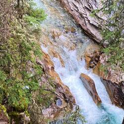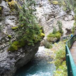 Hallo, heute sind wir von Regentropfen auf dem Wohnmobil geweckt worden, aber wir haben uns trotzdem auf den Weg zum Johnston Canyon gemacht.