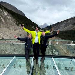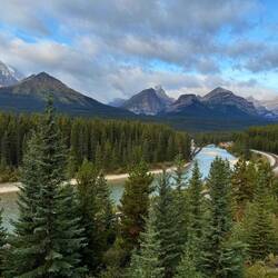 Unser heutiges Reiseziel war das Columbia Icefield. Dafür sind wir früh auf dem Bow Valley Parkway gestartet. Unser erster Stopp: die Morant’s Curve. Dort hat man eine schöne Aussicht ins Tal undLeia mais