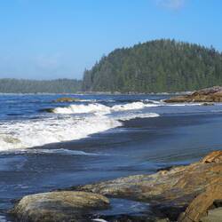 Nachdem es gestern den ganzen Tag geregnet hatte schien heute Morgen die Sonne. Also machten wir uns, bevor wir zum Campbell River fahren, erstmal auf den Weg nach Tofino. Tofino ist ein kleinesLeia mais