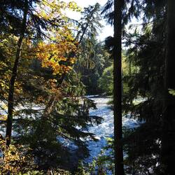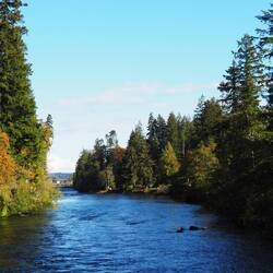 So, auf zu unserer letzten längeren Wanderung. Entlang des Campbell River ging es zu den Elk Falls. Auf dem Weg dorthin haben wir den Buckellachse beim Schwimmen und Treiben lassen zugeschaut. EsLeia mais