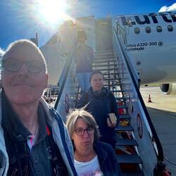 Um uns vor dem langen Flug noch mal die Beine zu vertreten sindLeia mais