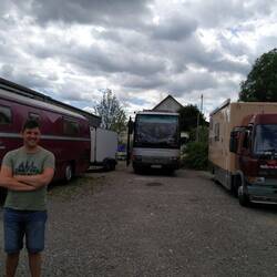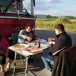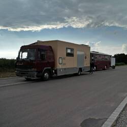 Unser Konvoi ist noch etwas länger geworden, da uns Helmar mit Familie noch bis Dettingen begleitet, um noch ein paar Hütchen abzuholen, eine Pizza zu essen und den Setra anzuschauen.
