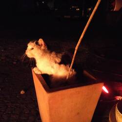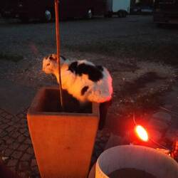 Die Katz ist auf jeden Fall begeistert und nimmt ihren Platz im Blumentopf ein...