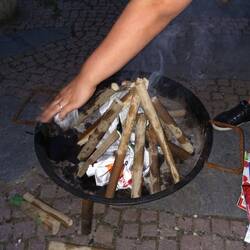 Gabis Tochter Jessy macht uns den Feuerteufel und schichtet wieder mal ein akkurates Lagerfeuer auf, welches einige Stunden und einige Katalogverbrennungen später allerdings nicht wieder zu erkennen ist (glücklicherweise hab ich keine Fotos von der sauerei gemacht).