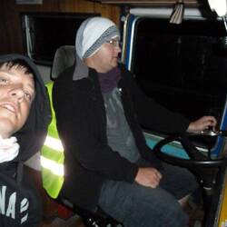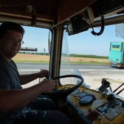 Nachdem wir ja nun nicht mehr mit dem Mountainbike durch den Bus fahren können, da die Reifen abgebrannt sind, muss Georg mit dem Straßenrad vorlieb nehmen…