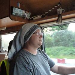 Wir fahren Landstraße in Richtung Epinal, 30 Kilometer vor dem Ort höre ich dann plötzlich einen lauten Knall und sehe überhaupt nichts mehr, komme fast von der Straße ab, kann den Bus dann aber gerade noch so halten. Gleichzeitig spüre ich, wie mir das Blut die rechte Hand und das linke Bein herunterläuft. Was ist denn jetzt los??