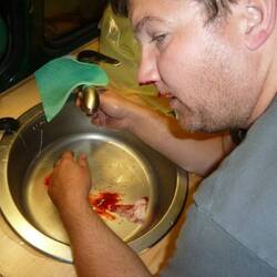 Helmar verrutscht sogar das Geweih vor lauter Essen ;-)
