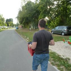 Wir machen uns dann auch gleich daran, den Platz perfekt aufzuteilen und scheuchen erstmal Jörg im Kreis rum (ja, 14,75m Radius müssen reichen!).