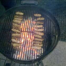 Dann gelingt es uns, mit dem von Jörg organisierten Holz und dem wichtigen Brandbeschleuniger sowie Ralfs tollem Grill, den wir spontan zur Feuerschale ernennen, ein hervorragendes Grillfeuer zu entfachen, wo wir dann auch gleich mal unser Fleisch zubereiten.