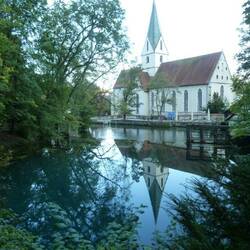 Da ich gleich mal die erste Abzweigung verpasse, ist der Weg etwas weiter als gedacht. Helmar fährt brav hinterher, in der Annahme, daß wir uns bestimmt auskennen :-). Immerhin kommen wir in Wolfegg an. Leider hat inzwischen das Wetter einen Durchhänger: Es regnet die ganze Strecke.