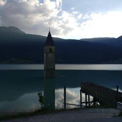 Gefühlte 100 Tunnels später sind wir dann am Reschensee, hier darf das obligatorische Turmfoto natürlich nicht fehlen.