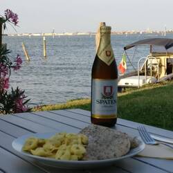 Dazu gibts ein leckeres Spatenbräu München. Da habt ihr, Italiener!