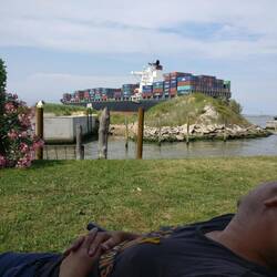 Direkt nebenan liegt der Containerhafen, dementsprechend ist auf dem Wasser auch was los. Tolle Sache!