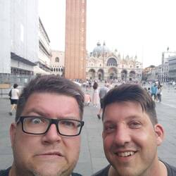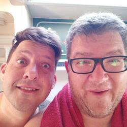 Man weiß nicht, wer von uns beiden begeisterter aussieht…