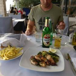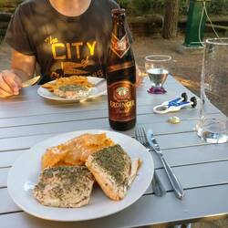 Wir lassen den Abend mit einem kühlen Getränk ausklingen, Georg flüchtet dann recht bald vor den Mücken nach drinnen, ich halte es etwas länger aus, da es nur hier draußen WLAN gibt… und ihr wollt ja lesen, was wir heute so getan haben!