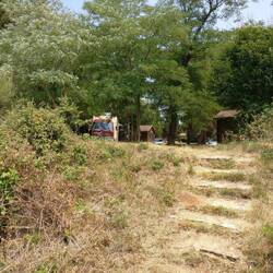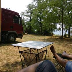 Ich gehe erstmal den Stellplatz bezahlen (15 Euro, geht, wäre auch incl. Strom, WC und Wasseranschluss) und schaue mich auf dem sehr edlen Campingplatz um, zu dem unser Stellplatz gehört.