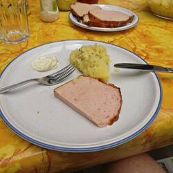 Auch hier werden wir herzlichst empfangen und gleich mit einem frisch gebackenen Leberkäs bewirtet.