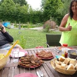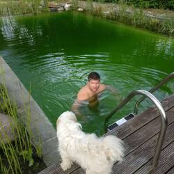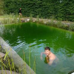 Die (Wiederholung der) Einweihung des Schwimmteichs (der im Moment ein kleines Phosphatproblem hat, was den Badespaß aber nicht schmälert!).