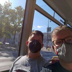 Wir landen am Stellplatz in der Perfektastraße, dann schnell in die Stadt.