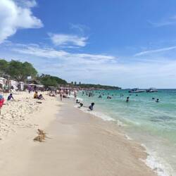 En cualquier lugar de Cartagena es muy fácil conseguir un tour a las Islas del Rosario, un archipielago que se encuentra a aprox. 40km , 1 hora y 20 aprox. de viaje en lancha desde el muelle de laLæs mere