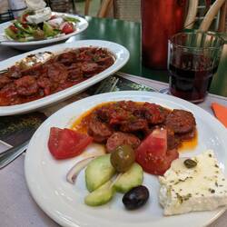 A short lunch after the City Walk and just before the tour of the Ancient Agora. Tomato balls, saganaki (fried cheese), arugula, tzatziki sauce, and lemonade made with Greek mint-like herb. VeryRead more
