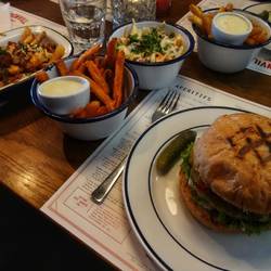 Zum Abschluss unserer Reise gönnten wir uns noch Burger mit Fries und einen Giant Chocolate-Cookie-Milkshake im Døgnvill in Oslos Stadtteil Aker Brygge.