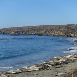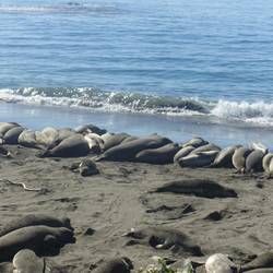 Am nächsten Tag habe ich mir den Teil des Highway 1 vorgenommen, den ich bei meiner Anreise aufgrund der Straßensperrung ausgespart habe. Ich stoppe öfter in den kleinen Städtchen, die meiste Zeit verbringe ich jedoch an dem langen Strandabschnitt, an dem sich ab Anfang der 90er Jahre Seeelefanten tummeln. Leider sind die dominanten Männchen, die 5m lang und über 2 Tonnen schwer sind noch nicht auf ihrer Reise von Alaska zur Paarung angekommen (ebenso übrigens wie die Wale, die jetzt demnächst nach Baja California ziehen). Trotzdem sind die Strände gut besucht. Im Vergleich zu den Seeottern und Seelöwen sind die Seeelefanten aber wirklich träge. Sie liegen faul in der Sonne und wenn es ihnen zu beiß wird nehmen sie ein kurzes Bad oder bewerfen sich selbst mit feuchtem Sand. Einige jüngere Männchen üben sich bereits in Revierkãmpfen. Rechtzeitig zum Sonnenuntergang und einen letzten Blick auf die Bucht in der Happy Hour bin ich zurück. Morgen möchte ich früh los, da sich bisher bei allen längeren Fahrten gezeigt hat, dass irgend etwas immer dazwischen kommt...Read more