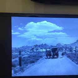 Den Nachmittag verbringe ich im Palm Springs Kunstmuseum. Das ist natürlich kein Ersatz für das MoMa in San Francisco, mir gefällt es aber trotzdem. Da ich mich in Sachen Kunst auf schmalem (Wissens-) Grat bewege, will ich es dabei belassen... Beeindruckend fand ich das täuschend echt aussehende Ehepaar auf einer Bank. Ich musste es wirklich zweimal umrunden, um auszuschließen, dass es einfach nur Schauspieler sind. Passend zu meinem Ausflug von gestern gibt es eine Auswahl von Western, die im Norden von Palm Springs gedreht wurden.