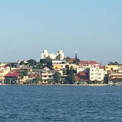 Am nächsten Morgen beschließe ich, mich etwas um meine inzwischen sehr bescheidenen Spanischkenntnisse zu kümmern. Das steht für Costa Rica und Panama sowieso auf dem Programm aber für heute nehme ich mir die ersten Lektionen vor. Dazu lasse ich mich von einem der kleinen Boote auf die Museumsinsel bringen. Nach der kurzen Besichtigung von Ausgrabungsgegenständen aus der Region sowie Ausstellungsstücken des heute noch hier ansässigen Radiosenders inkl. Blick auf den aktuellen DJ habe ich im Café ausreichend Ruhe und Muße für die ersten Auffrischungen meiner Sprachkenntnisse. Verstehen klappt noch ganz gut, aber mit dem Finden der richtigen Vokabeln tue ich mir schwer, auch wenn es nach jedem kleinen Gespräch mit einem Einheimischen etwas besser wird. Gegen Abend schaue ich mir dann noch den zentralen Platz in der etwas höher gelegenen Inselmitte an. Neben Rathaus, Kirche und Basketballfeld gibt es einen kleinen Park inkl. Weihnachtsbaum. Außerdem traumhaften Meerblick. Damit habe ich meinen Lieblingsplatz für den Sonnenuntergang hier gefunden, ebenso wie viele Einheimische. Mit einem Bier von Kiosk sitzen alle rundum zufrieden auf den zahlreichen Bänken hier im Park, während sich in den Bäumen eine riesige Schar von schwarzen lautstarken Vögeln sammelt, die mich in Belize schon mehrfach um den Schlaf gebracht haben, vor allem früh am Morgen.Read more