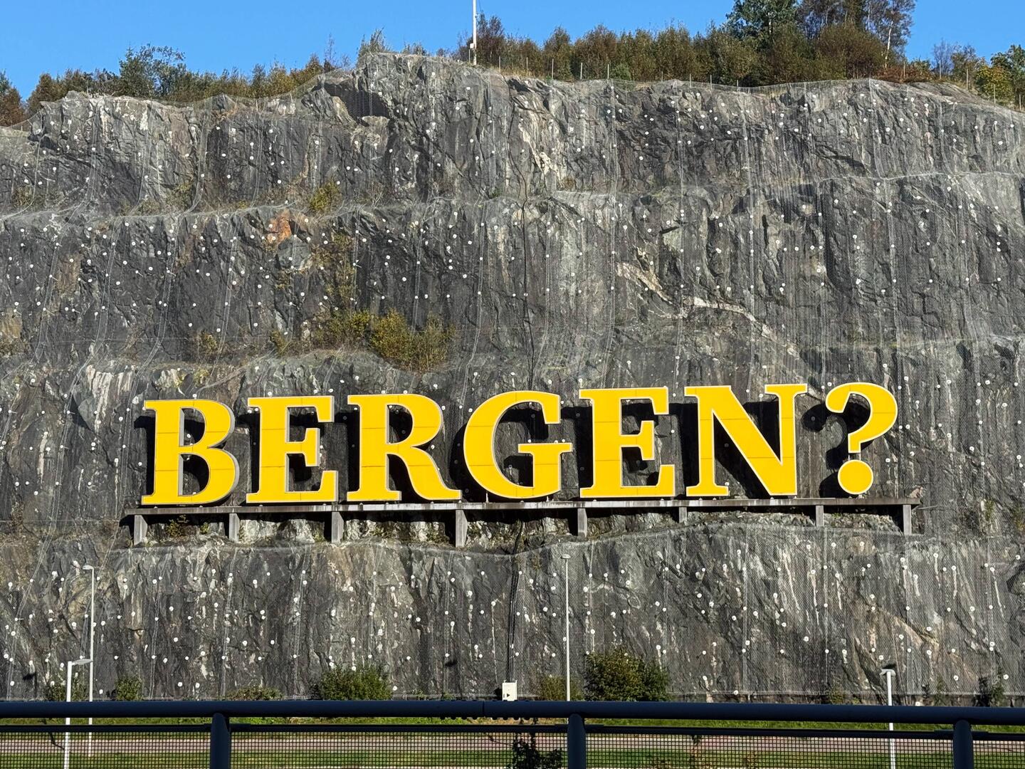 The question mark on the Bergen sign at Bergen Airport is actually part of an art installation by Icelandic artist Ragnar Kjartansson. The piece spells out “BERGEN?” in large, luminous yellow letters, and it's meant to evoke a sense of existential reflection and poetic ambiguity.