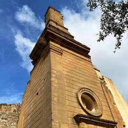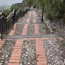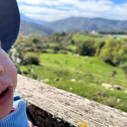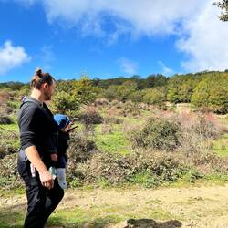 Запакувавши смаколики з кавʼярні з собою, ми пішли гуляти вузенькими вуличками. Вистачило 15 хвилин, щоб пройтися усіма провулками, і ми вийшли трохи вище селища. Звідти розпочиналась прогулянкова стежка, яка вела зигзагом вгору. Ми були б не ми, якби не попленталися туди, ніби гори нас кличуть, а ми безсилі відмовити. Так ми і крокували вимощеними сходинками між височеними евкаліптами стежкою, яка вела незрозуміло куди. Альма спала, тому я була готова йди будь-куди, де тихо Ми вибралися до дороги на пагорбі, де стежка загадковим чином скінчилась. Далі ми пішли вже старою дорогою. За чверть години дійшли до верху гори, подивились на маленьку церкву, та відправились назад.