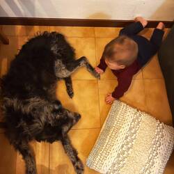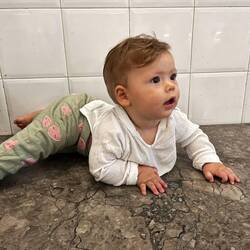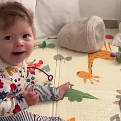 Ми розстелили ігровий килимок, вдягли Альму потепліше і вона із величезним задоволенням гралася та повзала. Марк в цей час розвертав ліжко, а я готувала вечерю. А Момо вирішив вивалятися у тухлій рибі зі смітника. Після чого був митий із цілою пляшкою шампуню.