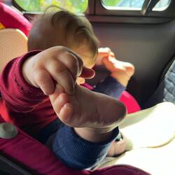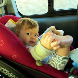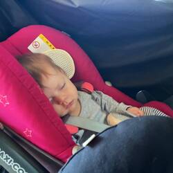 Зібралися потихеньку, і вирушили далі в бік омріяного півдня. Альма неймовірно переносить дорогу як для 7-місячного малюка. Я її розважаю усім арсеналом іграшок по черзі, і вона грається. Засинати їй непросто було, вона звикла до заколисувань на ручках. Тому я враскорячку над нею висіла і годувала, поки Марк намагався ухилитися на автобані від непередбачуваних водіїв, які їдуть однією машиною на дві смуги, не вмикають поворотники і обганяють з короткою дистанцією. Все тіло боліло, бо я їхала не пристібнута, балансуючи на одній нозі, тримаючись руками за різні боки сидіння.