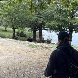 Розслаблено прокинулись, поснідали та пішли знайомитися із господарством власника будиночка, де ми зупинились. Пройшли крізь густий сад із інжиром, хурмою та гранатами до вʼєтнамських свинок та павичів. Альма віддала перевагу деревам, тварини її налякали.