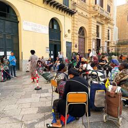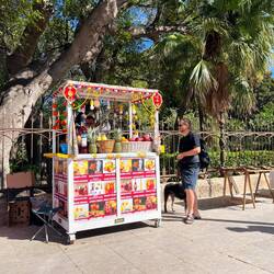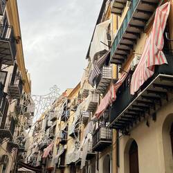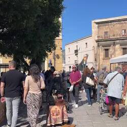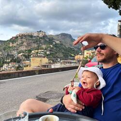 Не так усе виявилось, як бажалось: палюче сонце та спека в місті – не найкращі друзі в подорожі з 7-місячною дитиною та собакою. Спека розтопила нам мізки, Альма була вся мокра. Ми спробували кілька сицилійських десертів, з горем навпіл дійшли до фортеці, розчарувалися у музеї, проте познайомилися із дивакуватим музикантом. Він зіграв для Альми на цілій низці інструментів, два з яких вона вже знає – варган та тамбурин.
