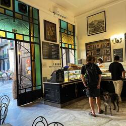 Ми присіли у крихітне вуличне кафе випити лимонаду. Я ще й зголодніла, як завжди на грудному вигодовуванні. Тож замовила тост з сиром і обрала в холодильнику сицилійський лимонад із сіллю. Власниця кафе нам дуже сподобалась – така якась розслаблена, адекватна. Сказала, що це дуже особливий напій, допомогла нам пересісти з вітряного місця на сонячне. Лимонад мені дуже зайшов, ідеально збалансований ізотонічний напій на спеку. Нарешті нам усім вдалося дійсно розслабитись: ми пили свої лимонади і насолоджувалися видом, Альма бавилася своєю шляпкою, а Момо відпочивав під столом.