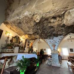 Ми зголодніли, і я знайшла на гугл мапі ресторанчик недалеко від автобану з дуже гарними відгуками. Ми заїхали на невеличку гору у албанське селище, зупинились біля закладу. І тут вийшов власник, і так нас зустрів, ніби ми його старі друзі і дорогоцінні гості. Виявилося, що це історичний ресторан його мами донни Рози, жінки-емансіпе, яка власними коштами та силами відкрила його в 50х роках.