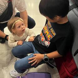 Вже в аеропорту ми спробували роздрукувати посадкові талони через автомат, та він видав помилку. Тож довелося чекати ще 1,5 години на звичайну реєстрацію. За цей час Альма встигла подружитися із родиною, що відправлялася провідати дочок у Штатах та хлопчиком, до якого вона просто сіла на коліна 😅