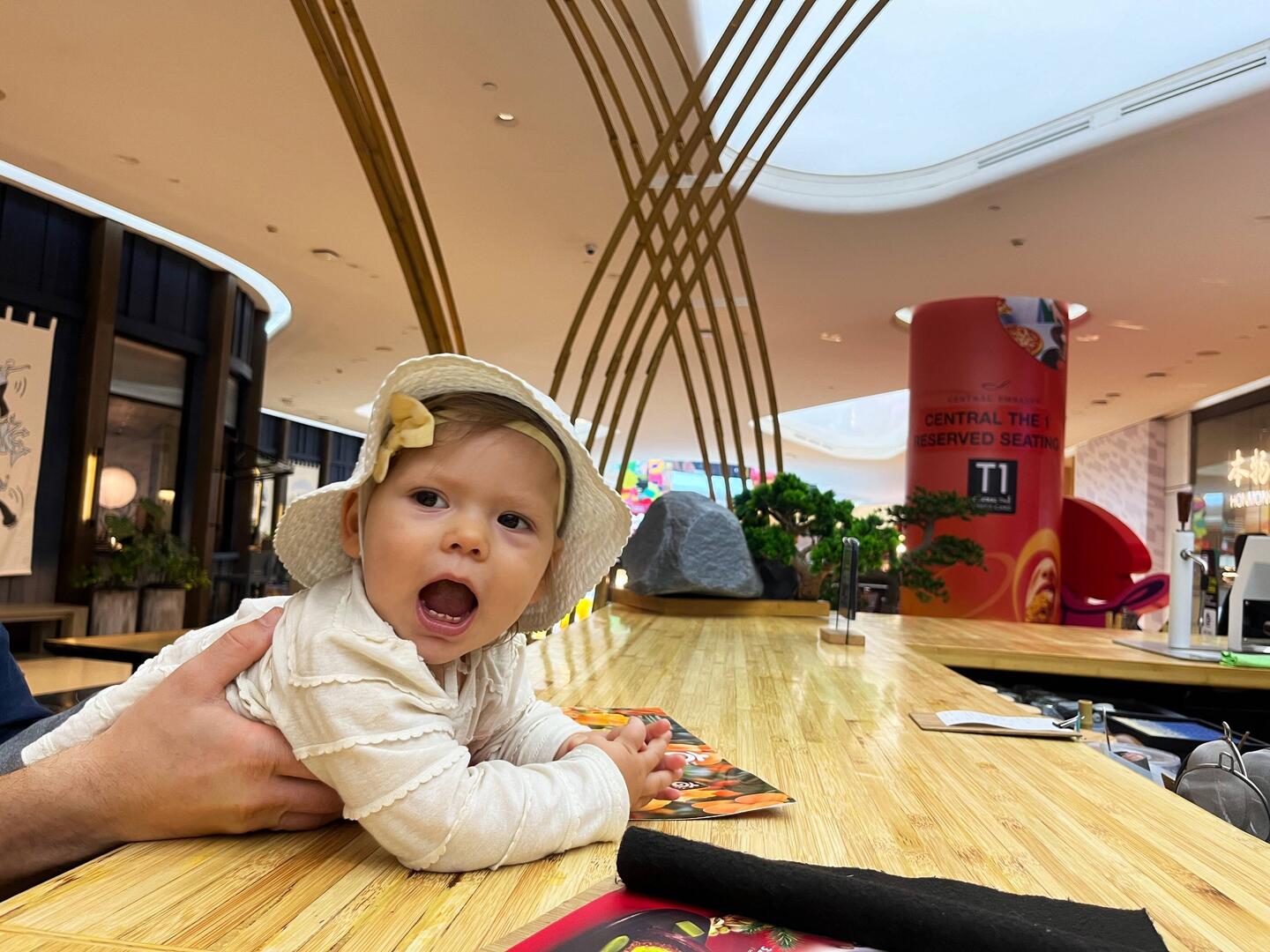 З найпершого моменту у Тайланді люди посміхаються та заговорюють до Альми, незалежно від того, чи вони підмітають вулиці, чи працюють у важкому люксі. Так і тут – співробітниці Bottega Venetta грали з нашою крихіткою у піжмурки, а співробітники елітних ресторанів махали їй та підморгували. Я так рада, що вона насичується любов’ю та увагою людей з такого маленького віку.