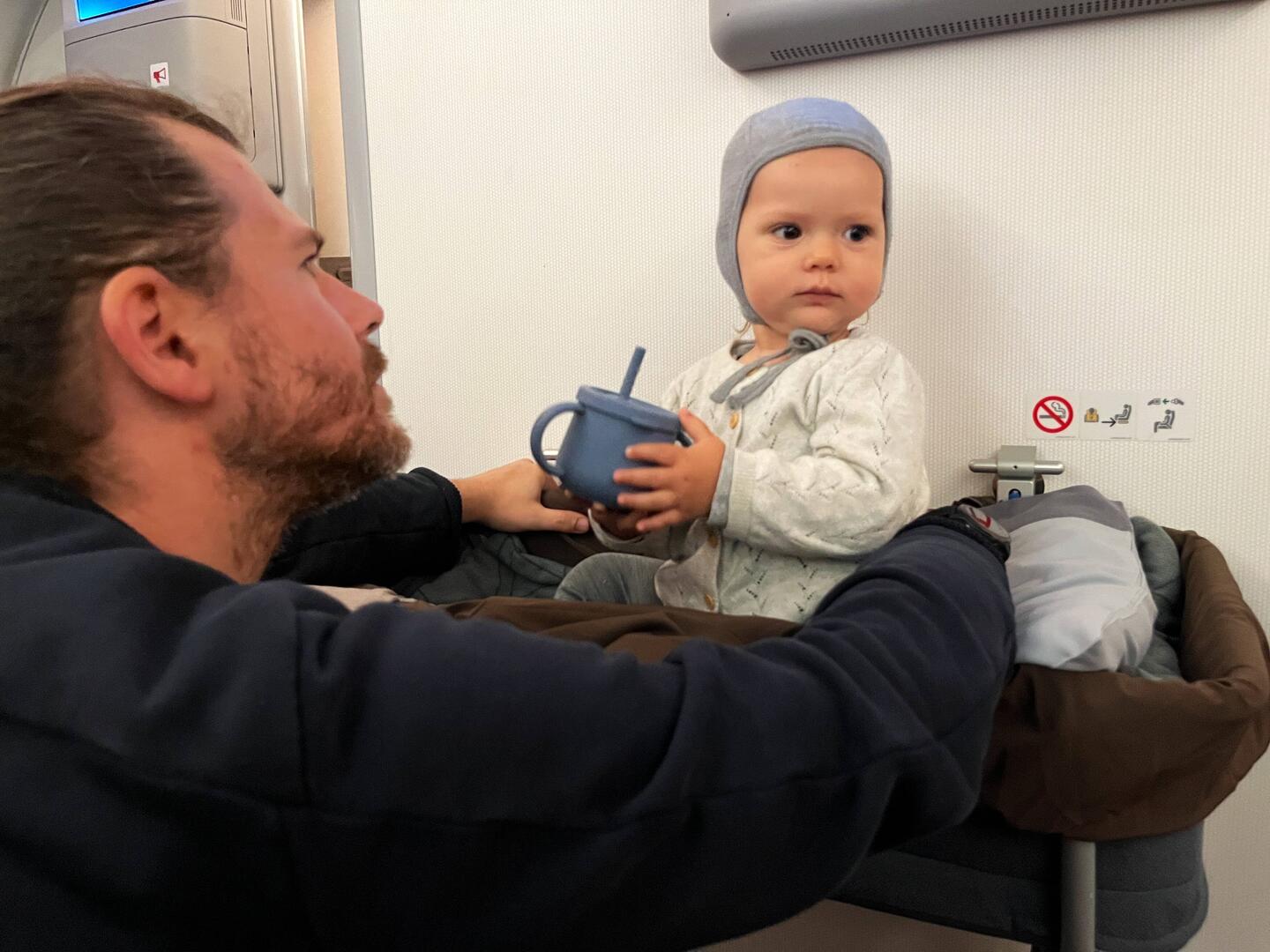 Під час зльоту ми розбудили малечу, щоб дати їй попити води та посмоктати молоко, аби їй не закладало вуха. Нам якраз принесли їжу, тож вона перекусила з нами, погралася ще з годинку, і я її заколисала знову. Була вже 4:00. Так вона і спала до ранку, і прокинулася якраз під роздачу сніданку.Leggi altro