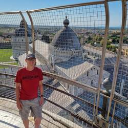 Wir waren um 13 Uhr am Turm. Tickets für den Aufstieg haben wir aber erst für 17:15 Uhr erhalten. Die Wartezeit haben wir uns mit Sightseeing und Essen in Pisa vertrieben.
