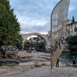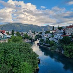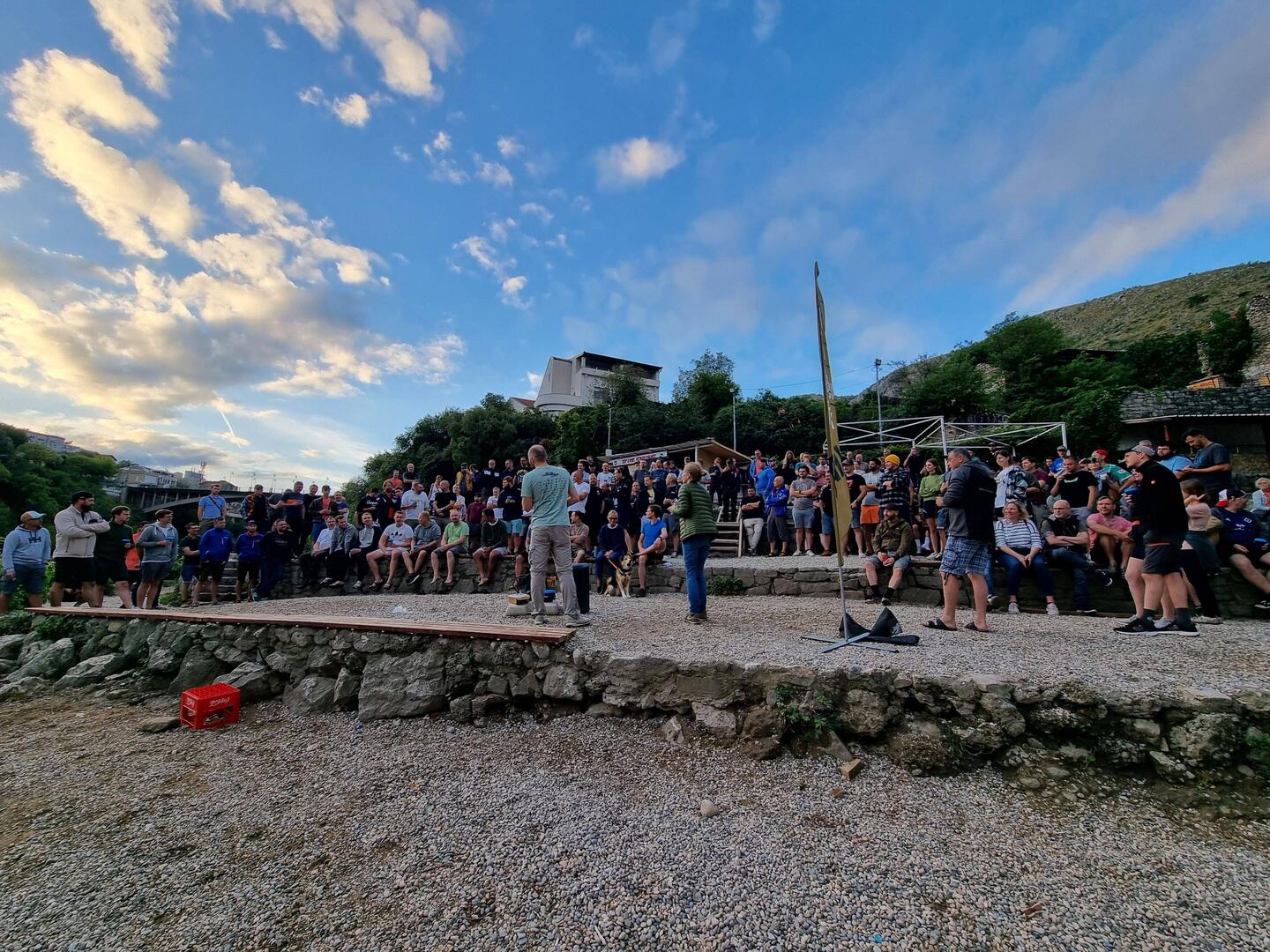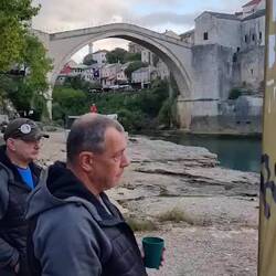 Das heutige Briefing ist direkt an der Brücke in Mostar, die wir gestern schon erkundet haben.