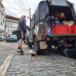 Heute geht gefühlt überall etwas kaputt. Bereits vor der Abfahrt, wird die Bremse der UrAlteZiege noch etwas eingestellt.