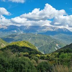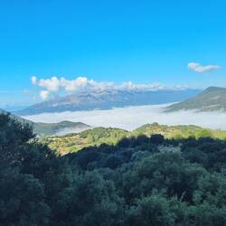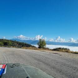 Wir starten im Morgennebel von Ioannina. Es geht aber recht schnell hoch in die Berge und wir sind über den Wolken. Für die heutige Strecke sollte man jedoch Schwindelfrei sein. Es geht ohneBaca lagi