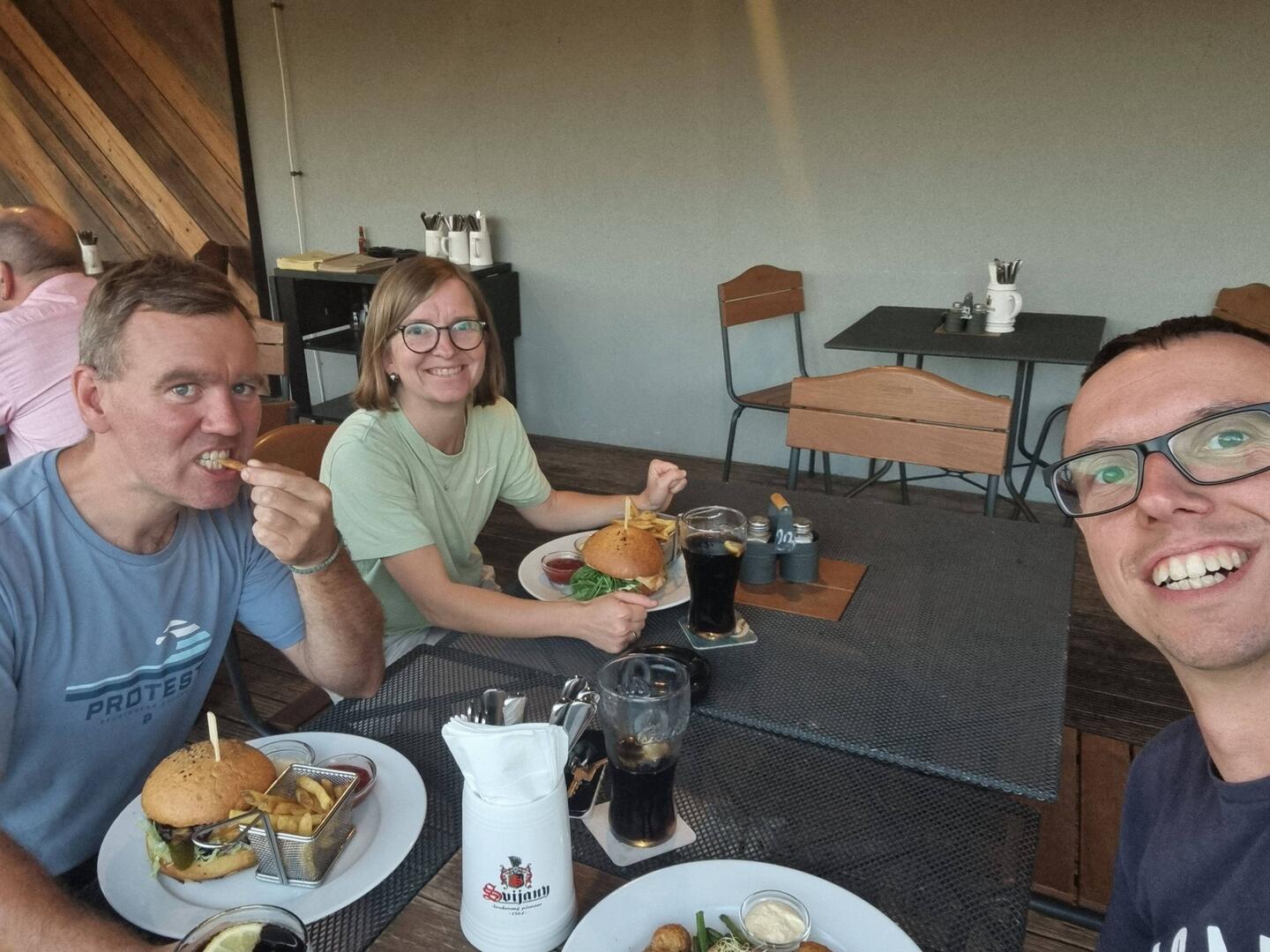Jetzt ist das "Vorgeplänkel" vorbei und es geht richtig los. Zusammen mit Bärnd geht es zur Akkreditierung. Bärnd hat ein Bärenhunger und setzt sich gleich mal an einen Tisch.