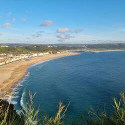 Der Surfspot Nazaré wurde uns im Briefing mit 20 Meter hohen Wellen angekündigt. Scheinbar waren wir aber gerade bei Ebbe vor Ort und haben nicht ganz so große Wellen gesehen.