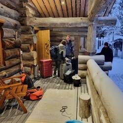 Nach der Ankunft wird erst mal die Hütte inspiziert und der offene Kamin angemacht.