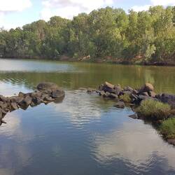 This is the Tomato Island boat ramp. ANZAC Day ceremonies are held here for travellers. The Roper runs all the way to the Gulf downstream and upstream another 50kms. Upstream is the Roper Bar ford.